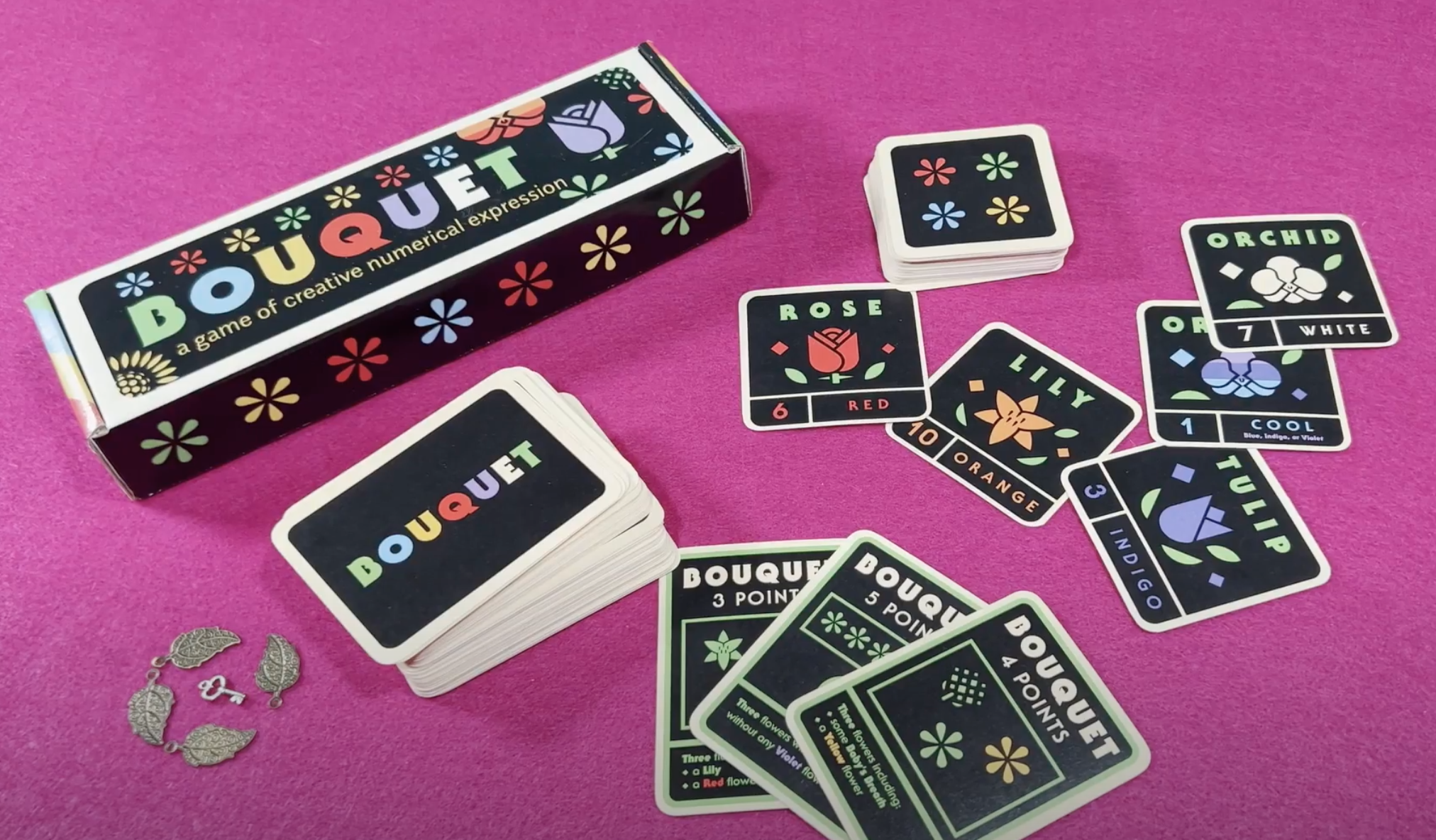 The cool part about Bouquet is that it might be in your best interest to use more of your dice to make a longer equation to pick the precise flower you need to complete your Bouquet, instead of trying to just pick the most flowers on your turn.